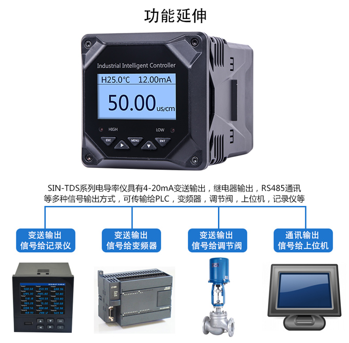 SIN-TDS210工業(yè)電導率儀表,可對各種工業(yè)用水的電導率(TDS)值進行連續(xù)測量和控制。根據(jù)水工業(yè)的環(huán)境和特點結(jié)合國際供電標準,考慮了特殊環(huán)境的電氣設(shè)計規(guī)范,增加了220VAC供電。