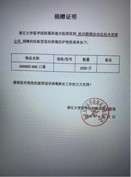 自新冠肺炎疫情爆發(fā)以來,杭州聯(lián)測自動(dòng)化有限公司累積向邵逸夫醫(yī)院捐贈(zèng)1020只N95醫(yī)用口罩,為當(dāng)?shù)氐目挂咭痪€的醫(yī)護(hù)人員提供一份保障。