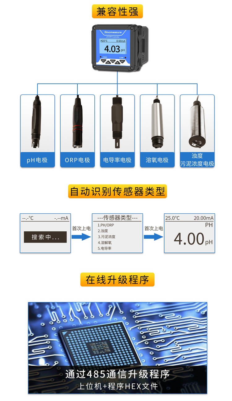 2016年,pH4.0控制器面世,公司不斷加大研發(fā)投入,進行產(chǎn)品的更新迭代,打造的pH控制器可以完美地適配國內(nèi)外各種pH電極,并且覆蓋全行業(yè)應用。伴隨著環(huán)保等行業(yè)對pH控制器的需求量激增,產(chǎn)品受到了客戶的廣泛贊譽。