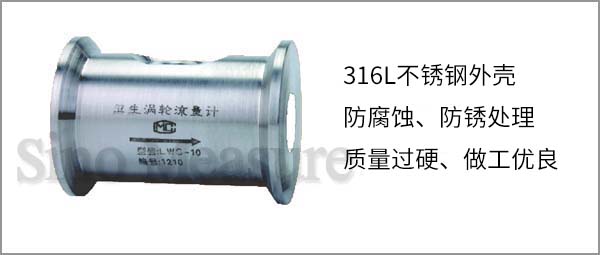 聯(lián)測LWS-SIN衛(wèi)生型渦輪流量計(jì)儀表外殼是用不銹鋼(316L)制成,機(jī)芯部分使用特種材質(zhì),具有良好的防腐蝕、防銹能力。